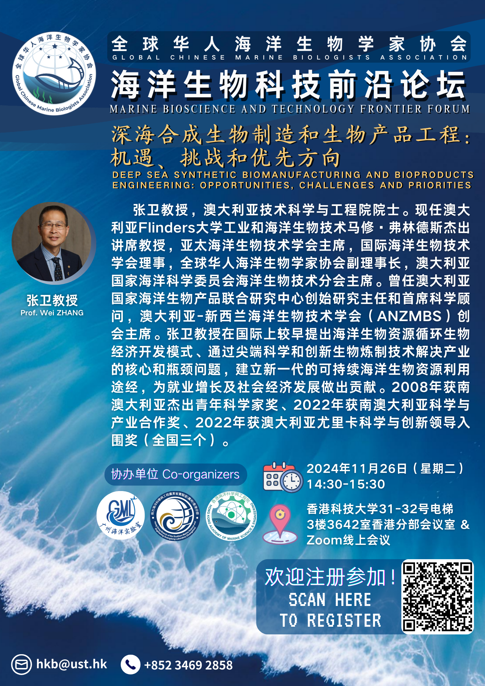 「海洋生物科技前沿論壇系列」– 張衛教授:深海合成生物製造和生物產品工程:機遇、挑戰和優先方向